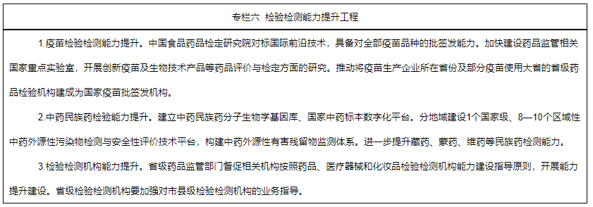 技術(shù)支撐能力明顯增強。全生命周期藥物警戒體系初步建成。中國藥品監(jiān)管科學(xué)行動計劃取得積極成果,推出一批監(jiān)管新工具、新標(biāo)準(zhǔn)、新方法。藥品檢驗檢測機構(gòu)能力明顯提升。