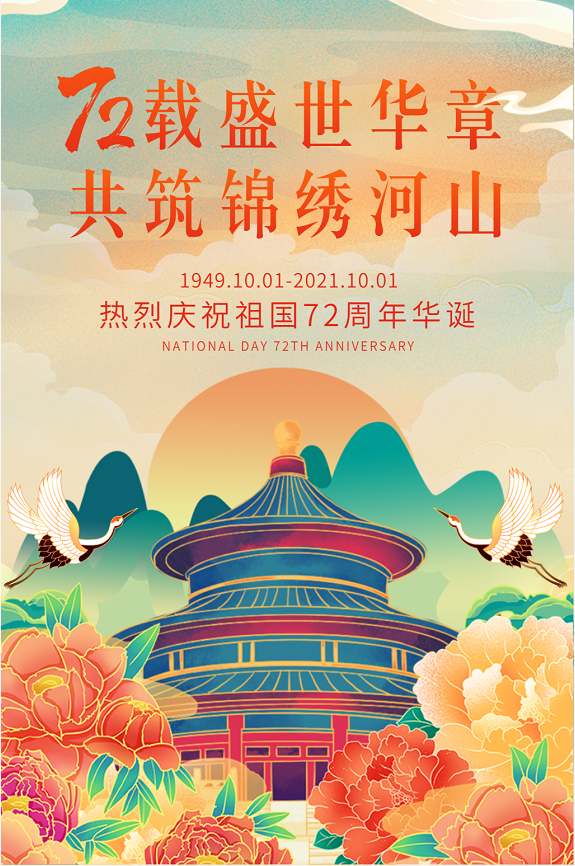 我們?cè)谛枪鉅N爛傾聽時(shí)代的鐘聲,我們?cè)诼L(zhǎng)夜中等待黎明的曙光。 祖國(guó)的現(xiàn)在是無數(shù)人前仆后繼、嘔心瀝血的成果;中國(guó)人用自己的計(jì)量挺起了中華古老的長(zhǎng)城向世界發(fā)出了最為雄健豪壯的聲音:中國(guó)人民從此站起來了。七十二年前新中國(guó)成立,今天中國(guó)正在騰飛。在此我們相對(duì)祖國(guó)母親說一句,生日快樂。